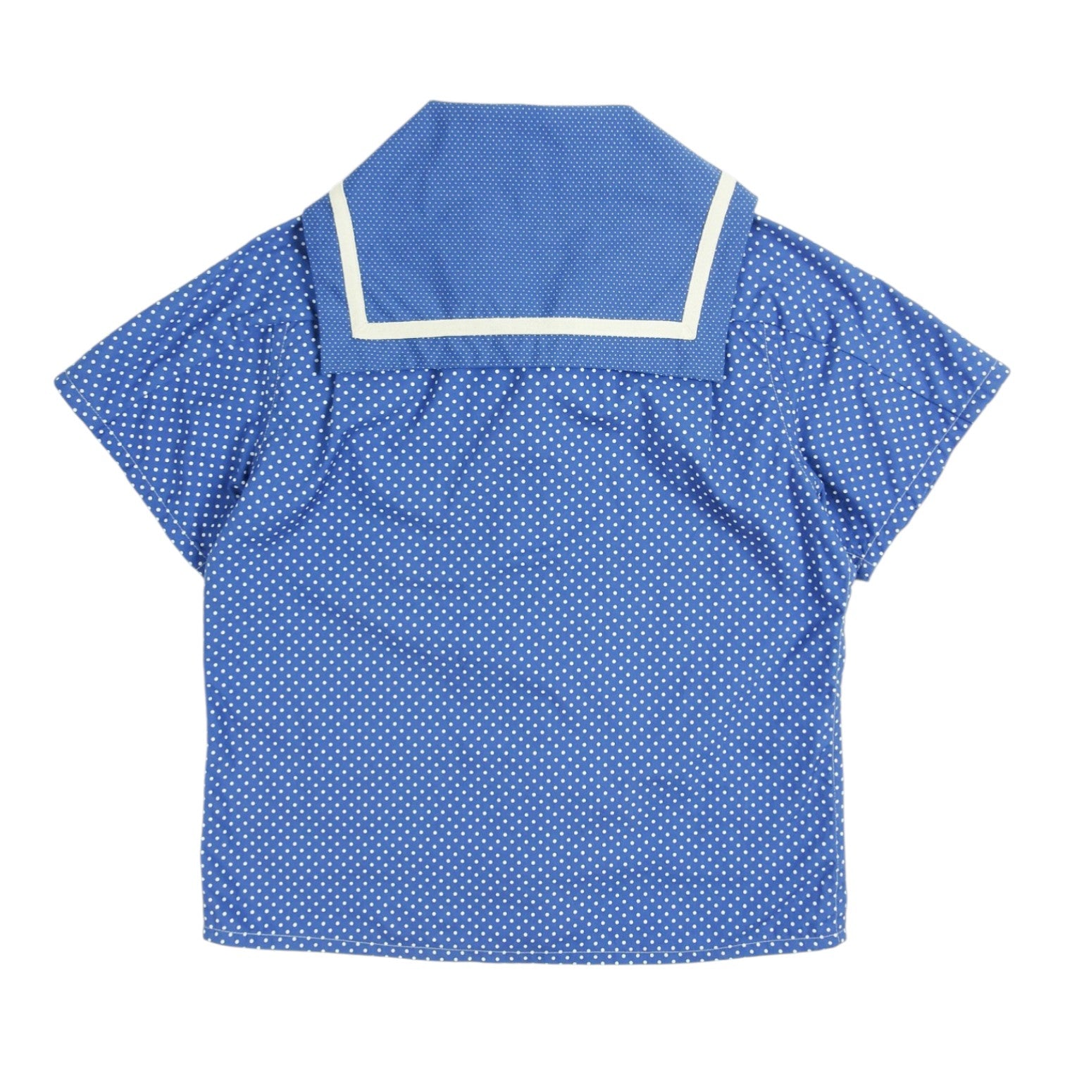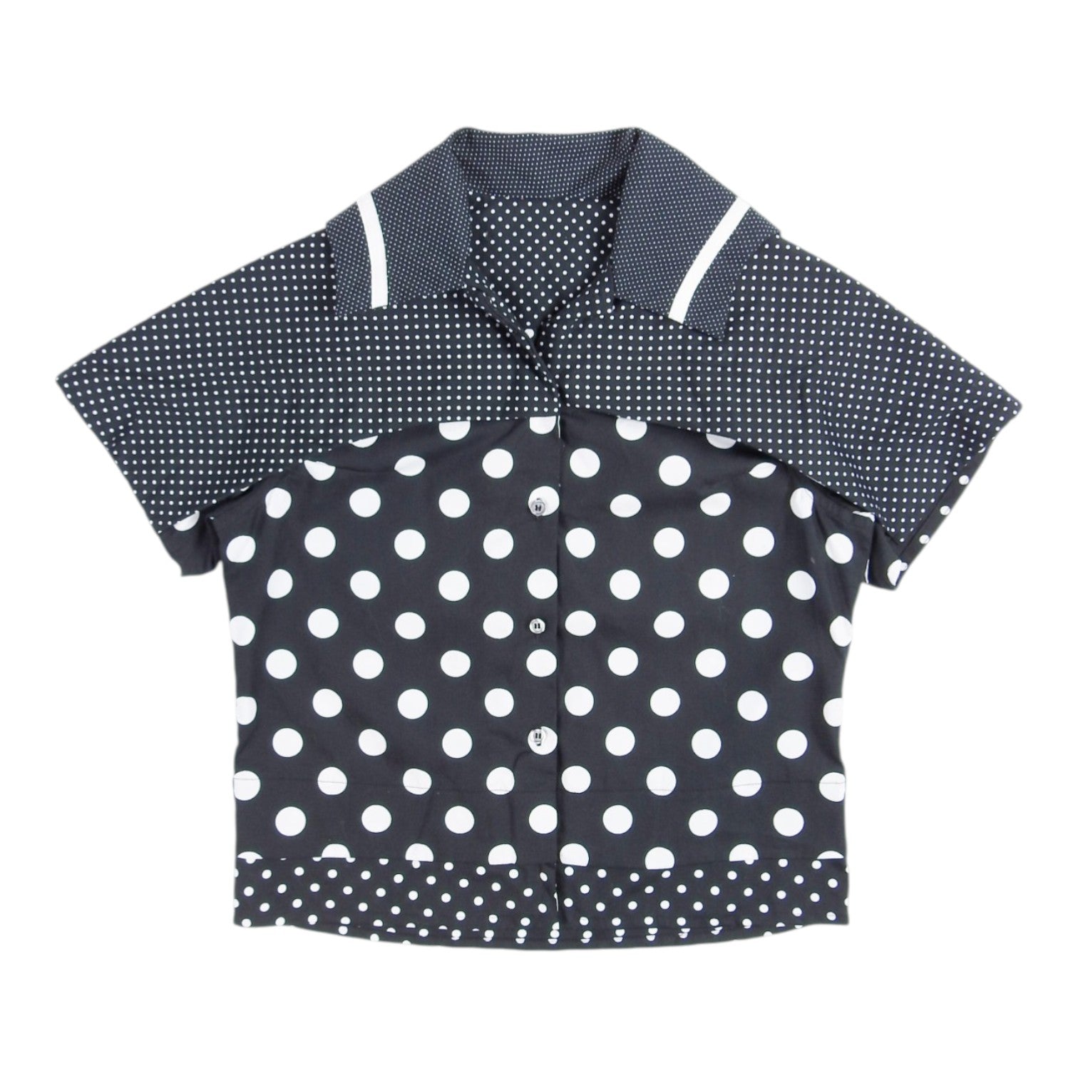 Made with 4 different size dot prints, the shirt has a multi-layer construction and a partial raglan sleeve, set sleeve construction.